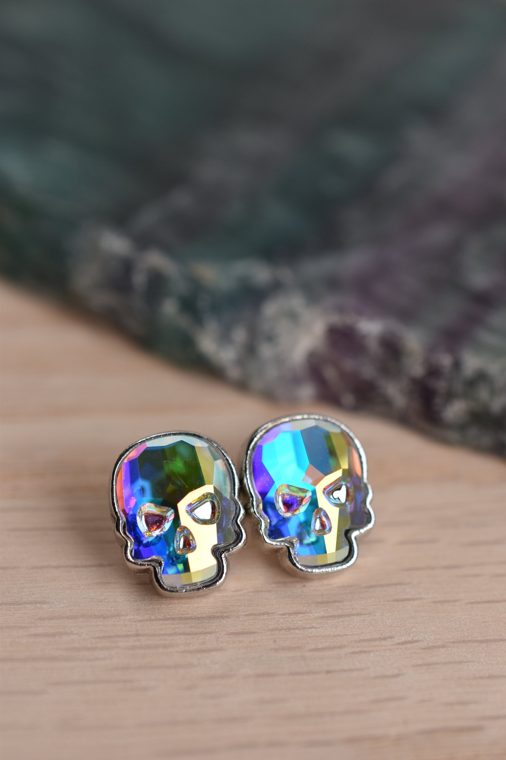 Add an edge to your daily look with these Crystal Skull Stud Earrings! They are the perfect amount of sparkle and set in Stainless Steel ear studs.
