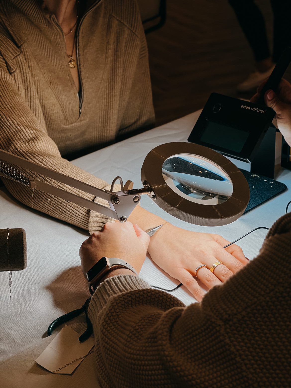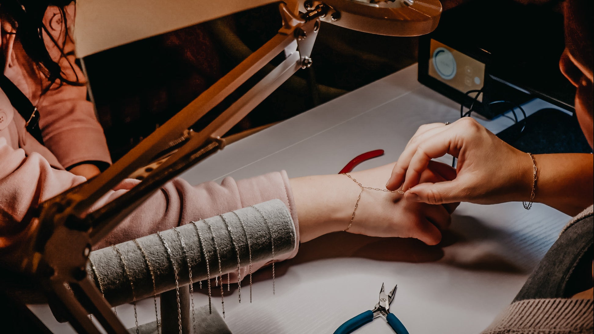 Welded/permanent jewelry will not be performed on children under 16 years of age. For younger children who would like to participate, a custom-fitted clasped bracelet is an option for children 12 and up. Children under 12 years of age are not eligible for this service.Â